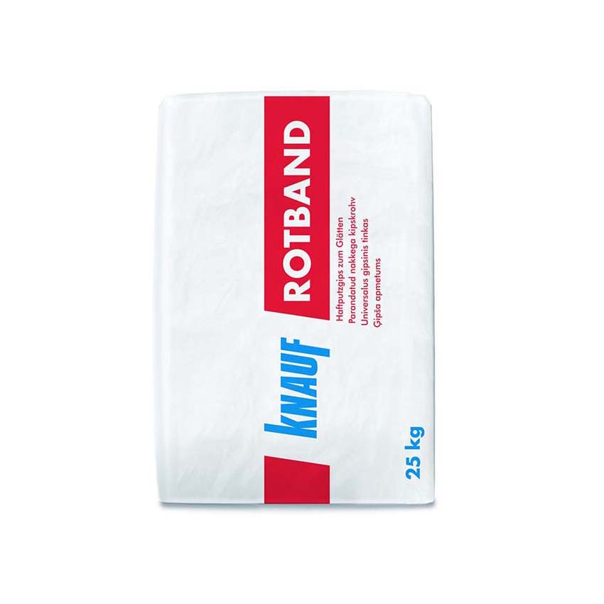 Ο Knauf ROTBAND είναι έτοιμος σοβάς εσωτερικών χώρων με βάση τον Γύψο και κατάλληλα επεξεργασμένο περλίτη και διαβαθμισμένη μαρμαρόσκονη. Ανήκει στην ομάδα κονιαμάτων PIV σύμφωνα με το DIN I8550. Είναι το ιδανικό προϊόν για σοβάτισμα με το χέρι, υψηλής ποιότητας και αισθητικής και ικανοποιεί τις ανάγκες του τελικού χρήστη. Εφαρμόζεται σε όλες τις εσωτερικές επιφάνειες τοίχων και οροφών σε κουζίνες και μπάνια. Είναι ιδανικός για “μερεμέτια” και για μικρές οικοδομές.