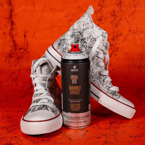 Το Montana Colors MTN PRO Marble effect είναι ένα διακοσμητικό σπρέι βαφής 400ml, με βάση ακρυλικό διαλύτη, το οποίο προσδίδει όψη σαν μάρμαρο σε κάθε είδους επιφάνειες. Χάρη στα χαρακτηριστικά του, μπορεί να εφαρμοστεί σε μέταλλο, στα περισσότερα πλαστικά, πέτρες, κεραμικά, γυαλί και άλλες προβαμμένες επιφάνειες.